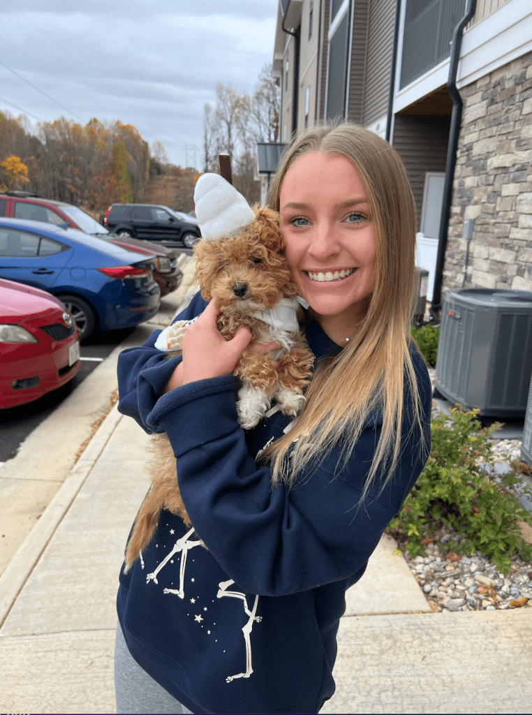 Tonight I will be passing out candy in a Lynhcburg neighborhood with family and my new puppy! I made sure my puppy, Lilli, had a costume for her first Halloween.